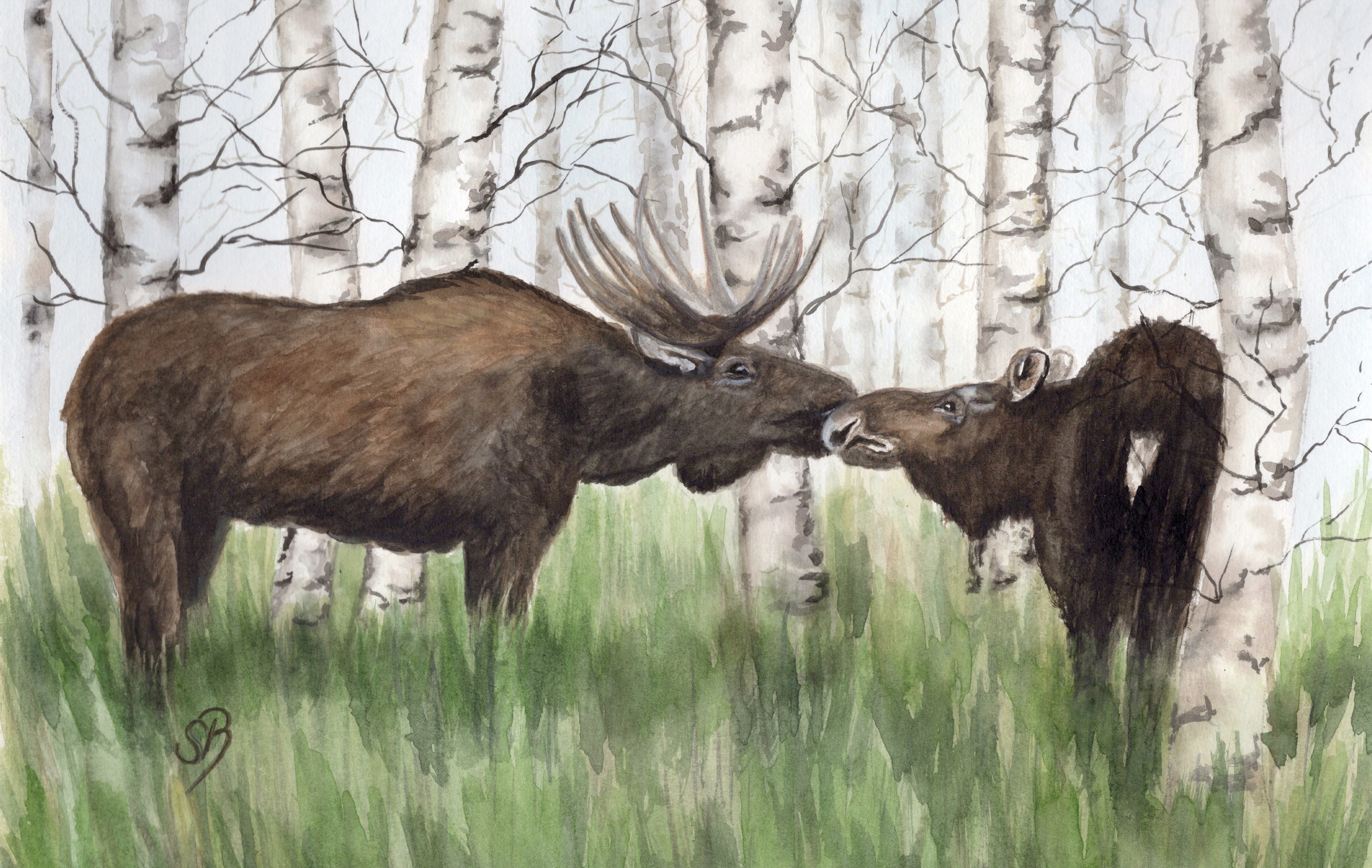 Preview: Brettchen Frühstücksbrettchen Aquarell - Schweden - Elch Elche Elchliebe